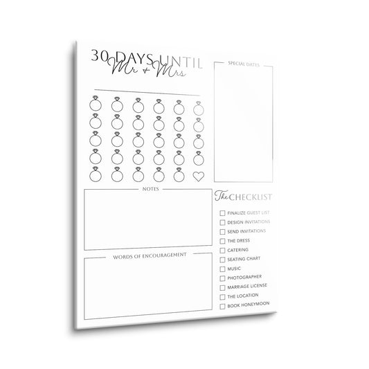 Minimalistic Wedding Tracker On White With List | 12x16