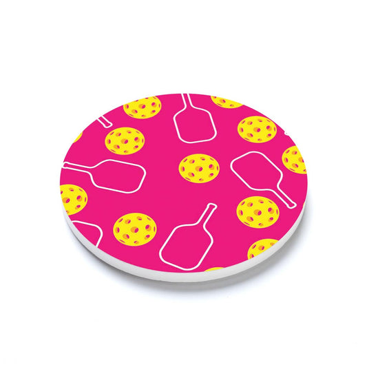 Neon Pickleball Paddle & Ball Pattern Pink | 4x4
