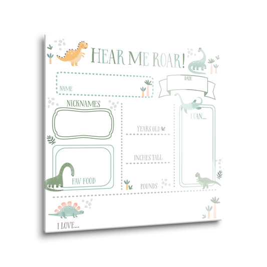 8x8 Glass Dry Erase-Dinosaur Nursery Hear Me Roar Dashboard