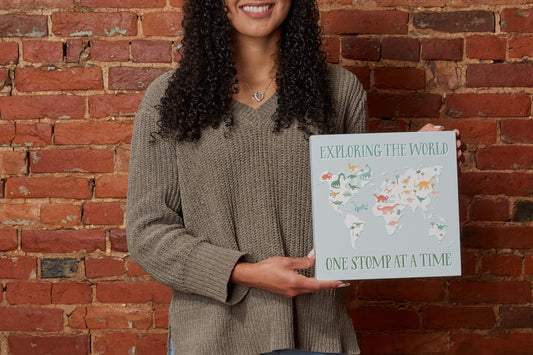10x10 Wood Block-Dinosaur Nursery Exploring The World