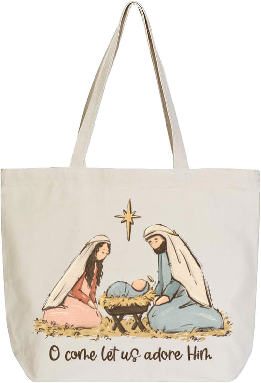 Canvas Tote Bag - Kneeling Nativity Let Us Adore Him