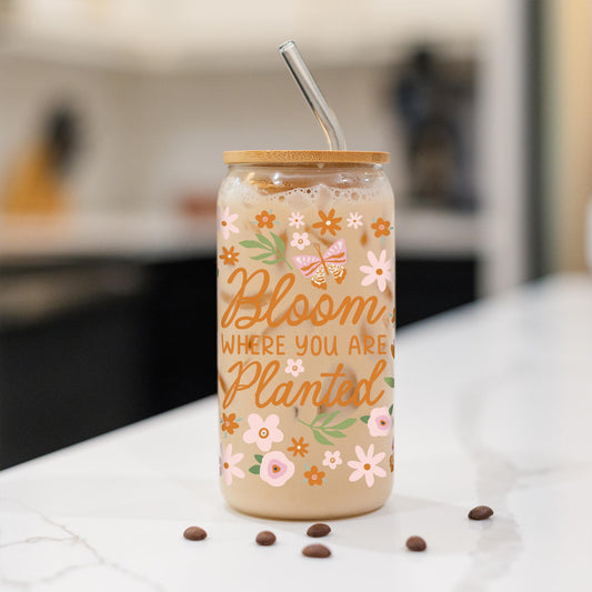 16oz Cold Brew Glass-Spring Bloom Where You Are Planted