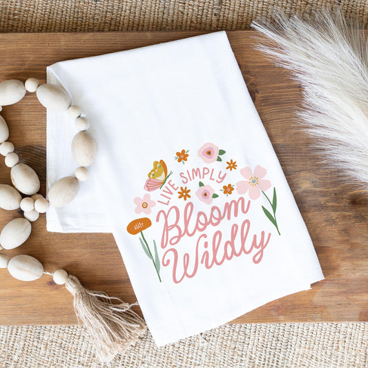 Cotton Tea Towel White-Spring Live Simply Bloom Wildly