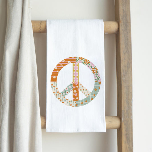 Cotton Tea Towel White-Spring Patch Peace Sign