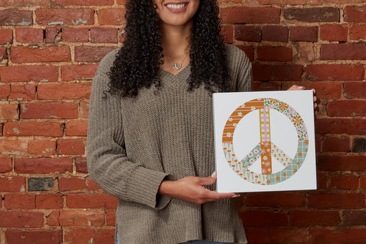 12x12 Wood Plaque-Spring Patch Peace Sign