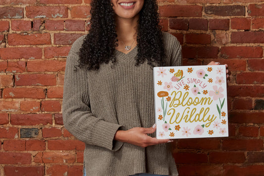 10x10 Wood Block-Spring Live Simply Bloom Wildly