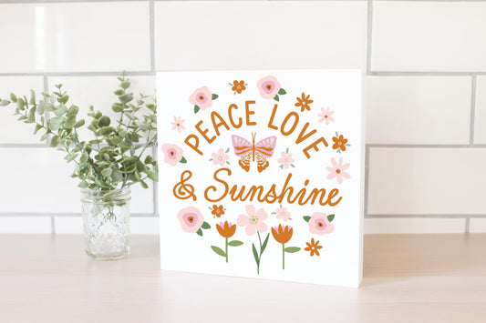 10x10 Wood Block-Spring Peace Love & Sunshine