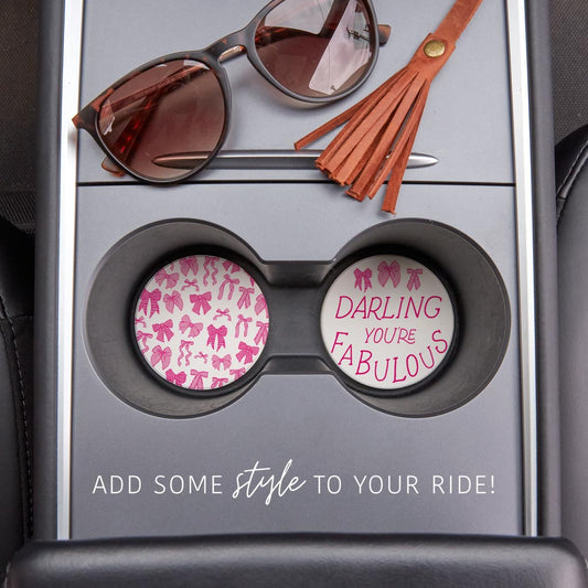Preppy Bows Car Coaster Pack | Pink Preppy Bows