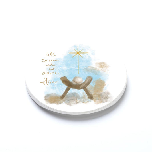 Car Coaster-Let Us Adore Him Watercolor Manger