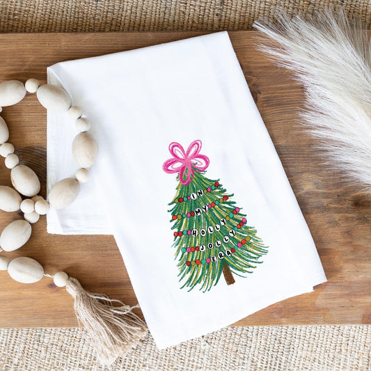 Cotton Tea Towel White-In My Holly Jolly Era Tree