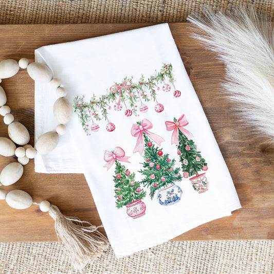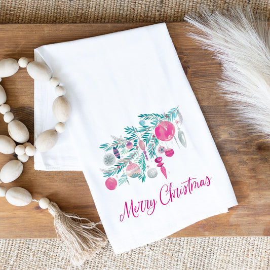Cotton Tea Towel White-Blush & Baubles - A Grand Millennial Christmas