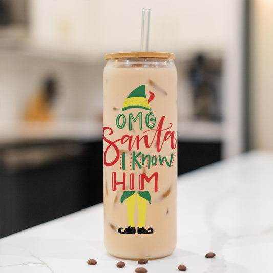 24oz Cold Brew Glass-OMG Santa I Know Him