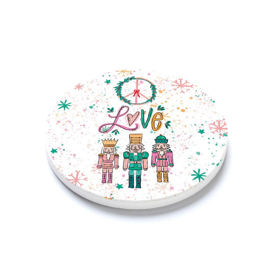 Ceramic Round Coaster-Peace Love Nutcrackers