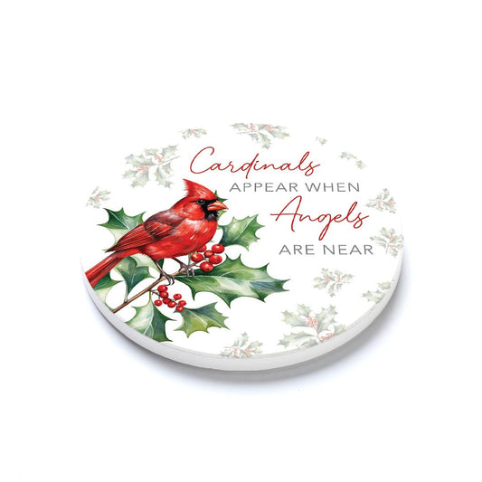 Ceramic Round Coaster-Cardinal Christmas Angels Are Near