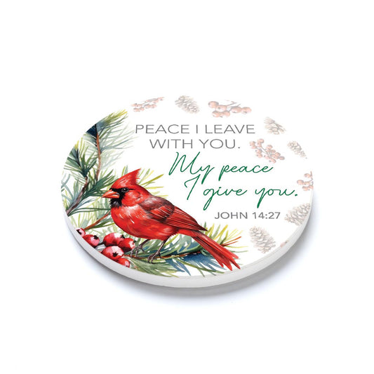 Ceramic Round Coaster-Cardinal Christmas Peace I Give You