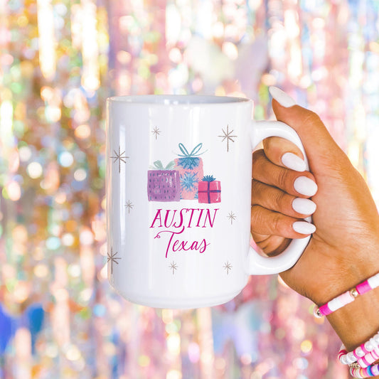 15oz Coffee Mug White-Love+Local Watercolor Sugar Plum Christmas Tree