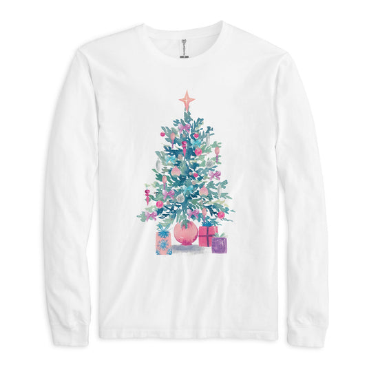 Long Sleeve T-Shirt White-Watercolor Sugar Plum Christmas Tree