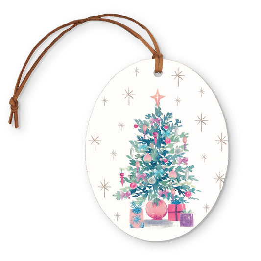 Oval Ornament-Watercolor Sugar Plum Christmas Tree