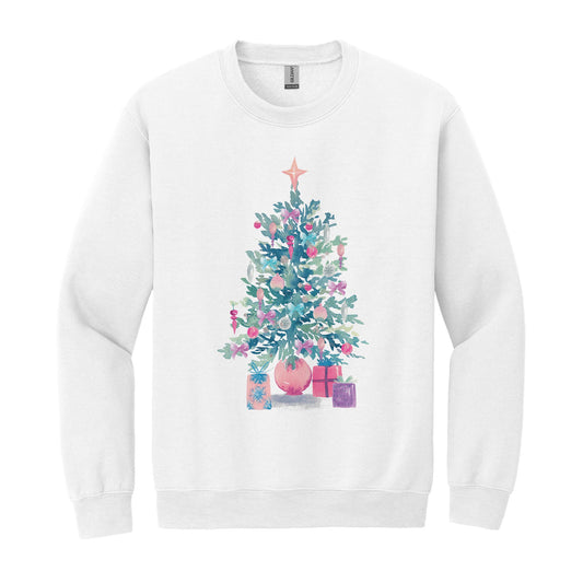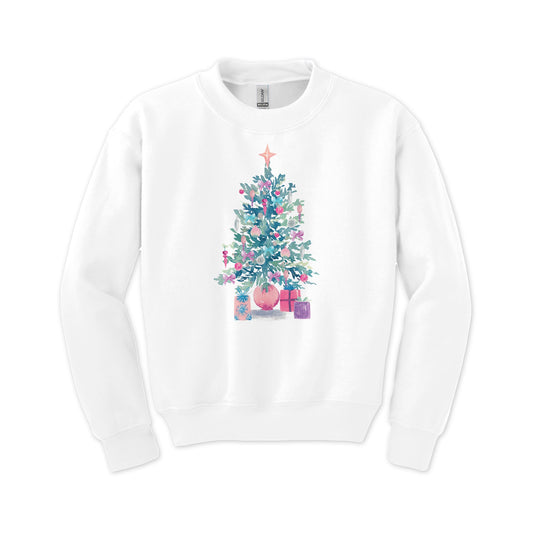 Gildan Sweatshirt White-Watercolor Sugar Plum Christmas Tree