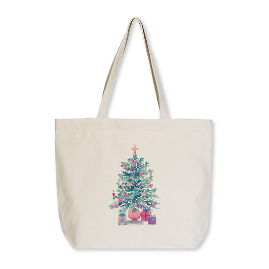 Tote Bag Natural Canvas-Watercolor Sugar Plum Christmas Tree
