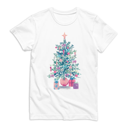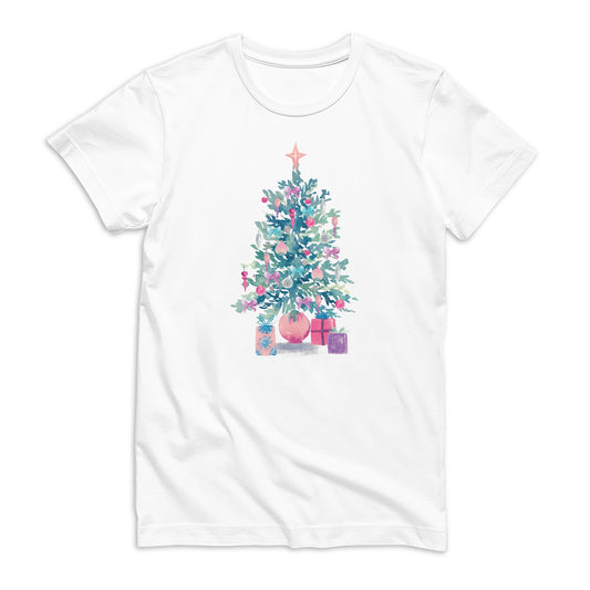 Bella Canvas T-Shirt White-Watercolor Sugar Plum Christmas Tree