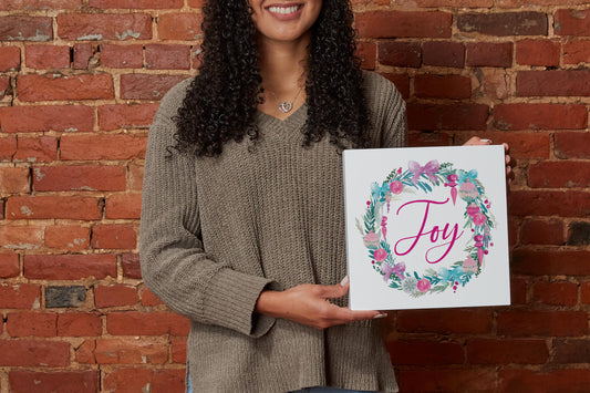 10x10 Wood Block-Watercolor Sugar Plum Joy Wreath