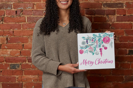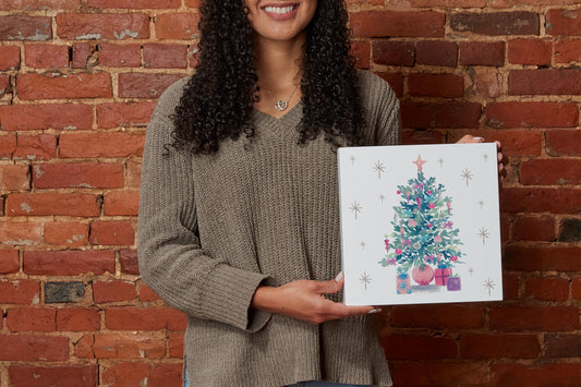 10x10 Wood Block-Watercolor Sugar Plum Christmas Tree