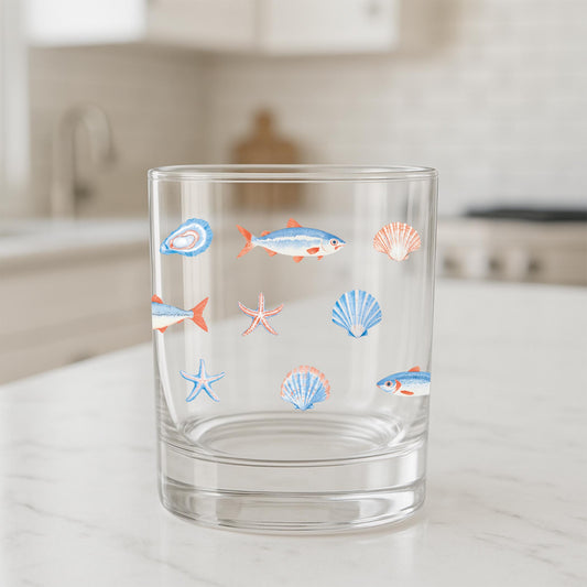 15oz Stemless Wine Glass-New England Tides Shells & Bows