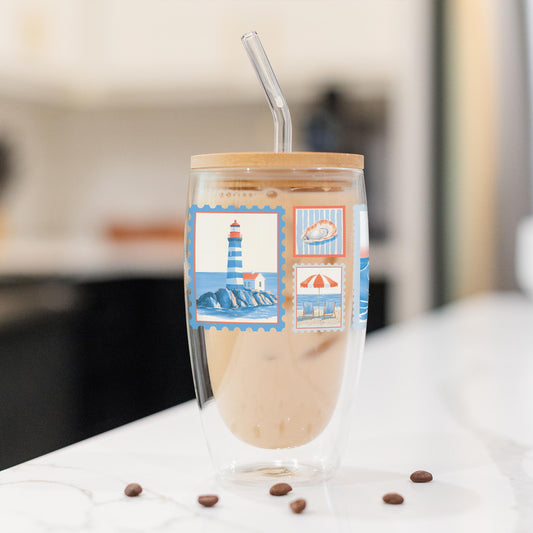 16oz Double Insulated Glass Tumbler-New England Tides Stamps