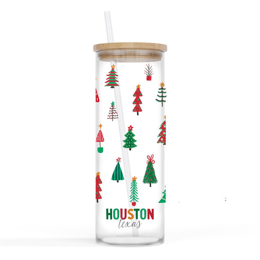 Love+Local 16oz. Glass Tumbler | Pink Christmas Trees