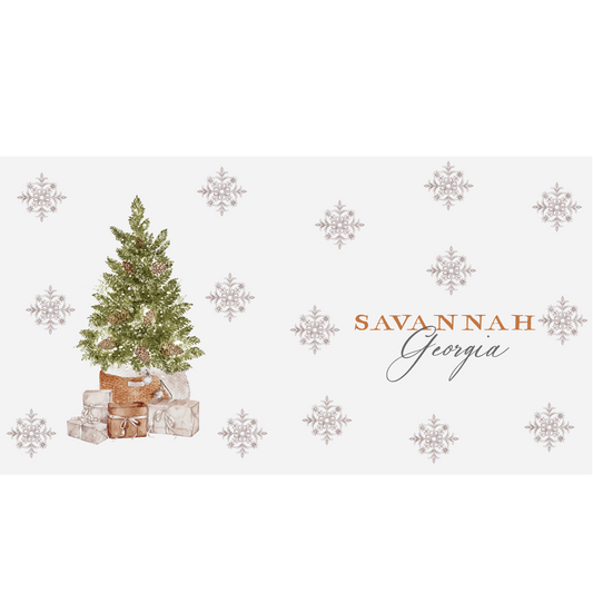 Customizable Christmas Tea Towel, Cottage Tree, City,State