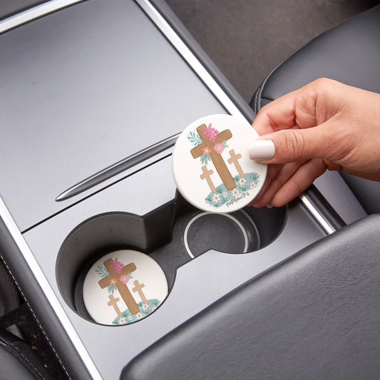 Car Coaster 2-Pack Kalia Lane-Floral Cross Matthew 28:6