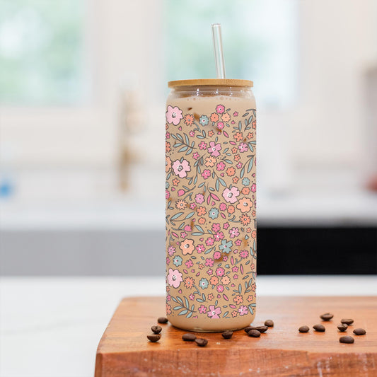 24oz Cold Brew Glass-Floral Pattern
