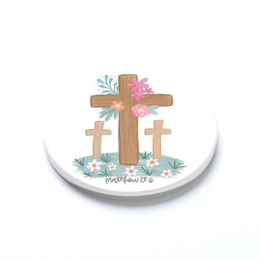 Car Coaster-Floral Cross Matthew 28:6