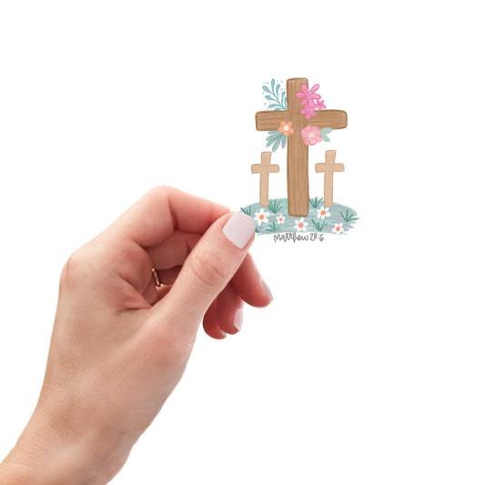 Vinyl Sticker-Floral Cross Matthew 28:6