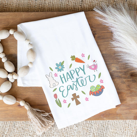 Cotton Tea Towel White-Bunny Kisses & Easter Wishes