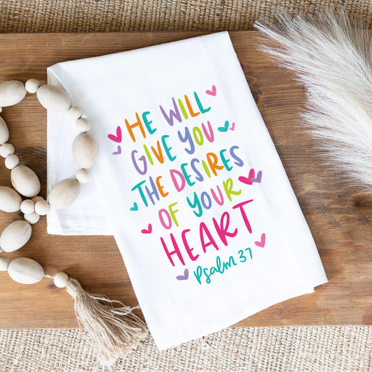 Cotton Tea Towel White-Psalm 37 The Desires of Your Heart