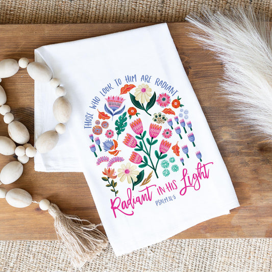 Cotton Tea Towel White-Radiant Hope Those Who Look To Him
