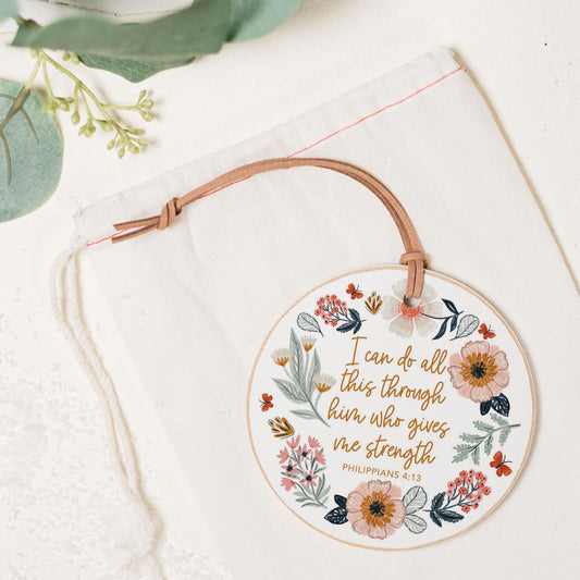 4" Round Ornament-Pretty Things Floral Faith Gives Me Strength