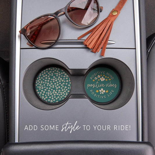 Car Coaster 2-Pack Kalia Lane-Positive Vibes & Floral Pattern