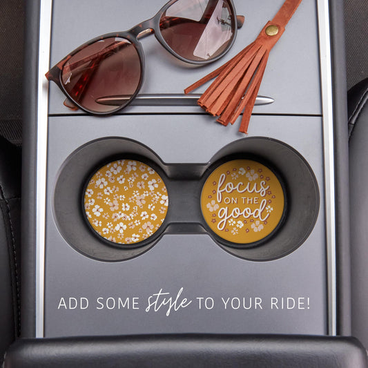 Car Coaster 2-Pack Kalia Lane-Focus On The Good & Floral Pattern