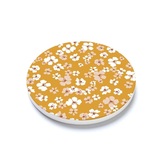 Ceramic Round Coaster-Inspirational Yellow Floral Pattern