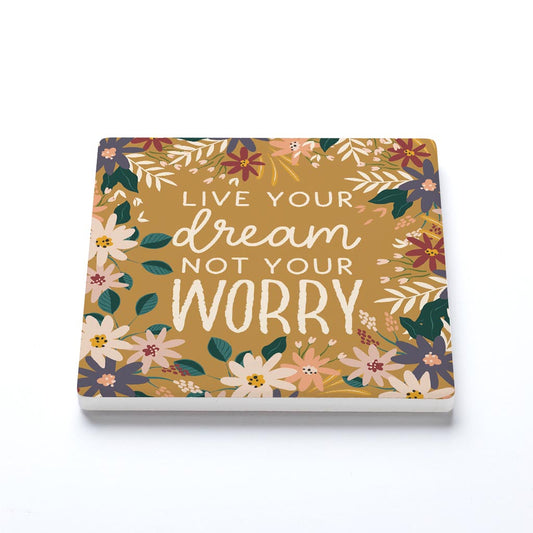 Ceramic Square Coaster-Live Your Dream Not Your Worry