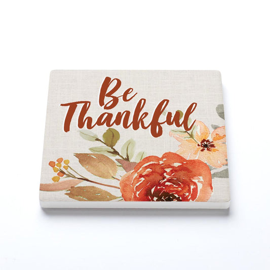 Ceramic Square Coaster-Be Thankful Fall Florals