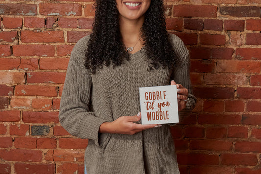 5x5 Wood Block-Gobble Til You Wobble Canvas