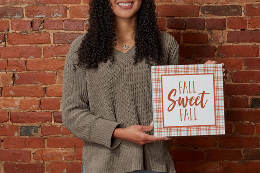 10x10 Wood Block-Fall Sweet Fall Orange Plaid