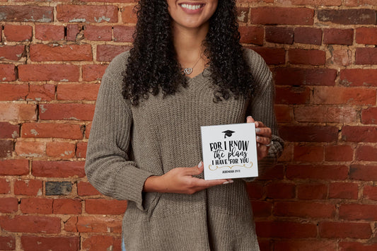 5x5 Wood Block-For I Know The Plans Gradutation Cap