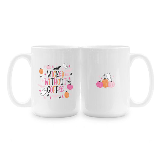 15oz Coffee Mug White-Happy Ghost Wicked Without Coffee