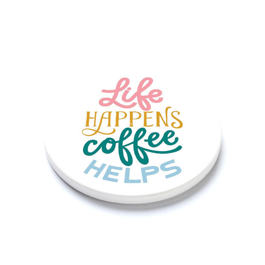 Ceramic Round Coaster-Life Happens Coffee Helps