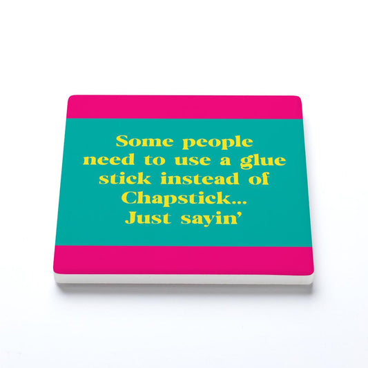 Ceramic Square Coaster-Bright Humor Glue Stick Chapstick